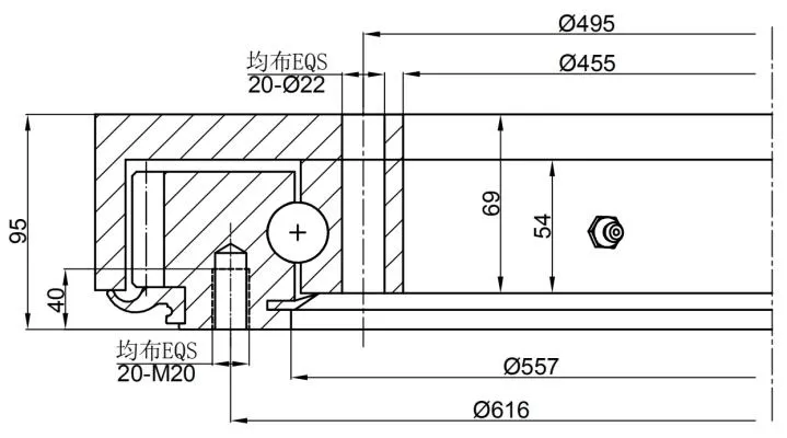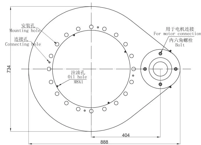 Lubrication of slewing drive; 3 M8X1 grease nipples on the inner ring; 2 M8X1 grease nipples on the housing; Slewing drive supplied pre-lubricated.