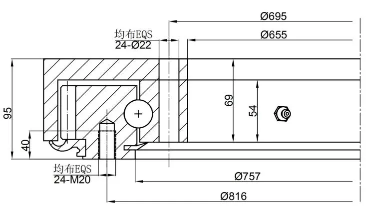 Lubrication of slewing drive; 3 M8X1 grease nipples on the inner ring; 2 M8X1 grease nipples on the housing; Slewing drive supplied pre-lubricated.