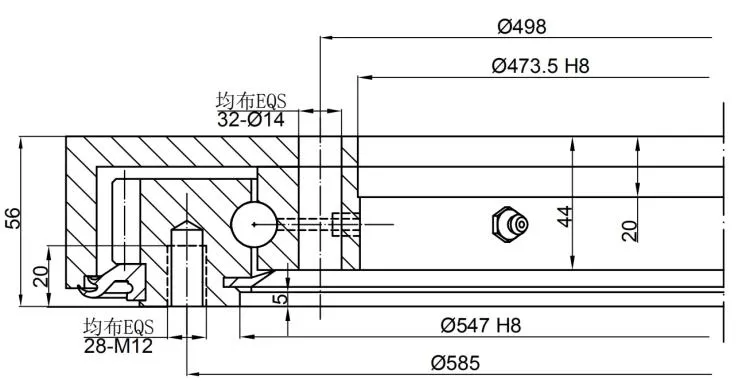 Lubrication of slewing drive; 4 M8X1 grease nipples on the inner ring; 2 M8X1 grease nipples on the housing; Slewing drive supplied pre-lubricated.