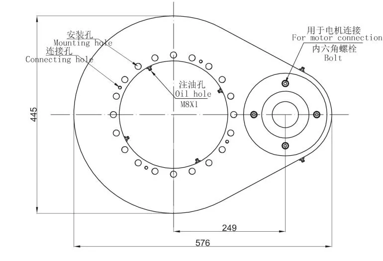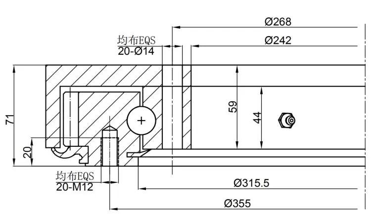 Lubrication of slewing drive; 4 M8X1 grease nipples on the inner ring; 2 M8X1 grease nipples on the housing; Slewing drive supplied pre-lubricated.